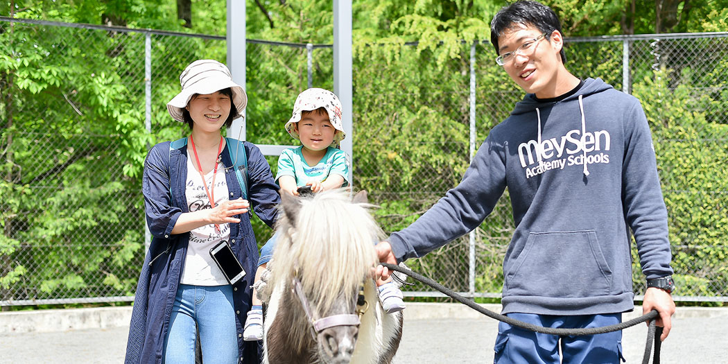 高森キャンパスでウサギやヤギ、ポニーなど、かわいい動物達と触れ合っていただくイベントです。