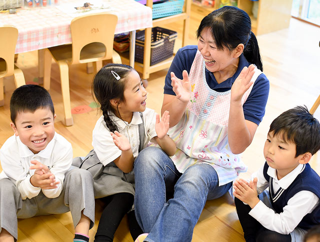 一日の大半を英語教員と一緒に過ごします。英語教員はみな、明泉学園の厳しい採用基準により選ばれ、トレーニングを受けています。